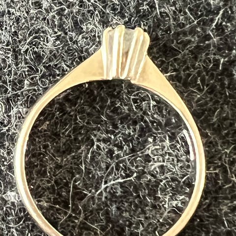 14 karat/585 hvitt gull m/enstens diamant. Diamanten er 0,08ct i W/SI.