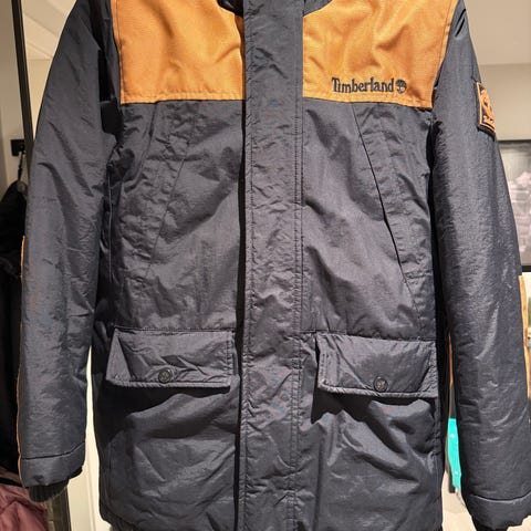 Tykk, varm vinterjakke fra Timerland selges. Pent brukt, men har en fått en liten rift øverst på høyre side. Str 12/150, men vil si den heller passer til 140-146.