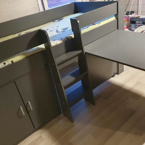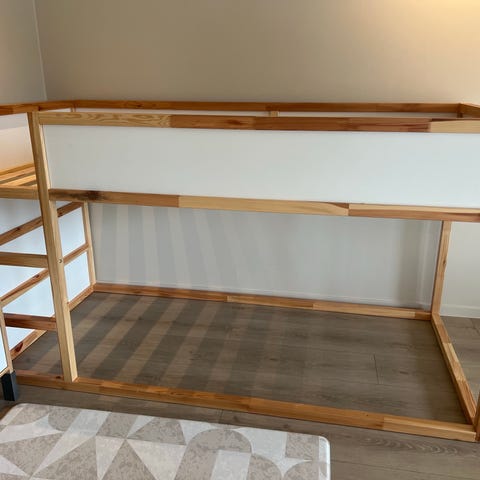 IKEA Loftseng barn i tremateriale. Sengen har en enkel og funksjonell design, egnet for barn. Den gir mulighet for utnyttelse av plass under sengen til lek eller oppbevaring.