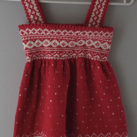 Se alle bilder. Strikket i merino som ikke blir like varmt som ull. Selene kan reguleres , nå er de tråklet på ( men holder fint til at kjole kan brukes) så kjolen kan vokse litt med barnet. Flott med hvit bunadsskjorte eller hvit bluse under. Gi meg beskjed hvis flere mål behøves. Jeg sender med PostNord så kr 69 kommer i tillegg. ( se gjerne alle mine annonser, mye strikk til barn ) Kan selvfølgelig også hentes her hos meg rett utenfor Jessheim .