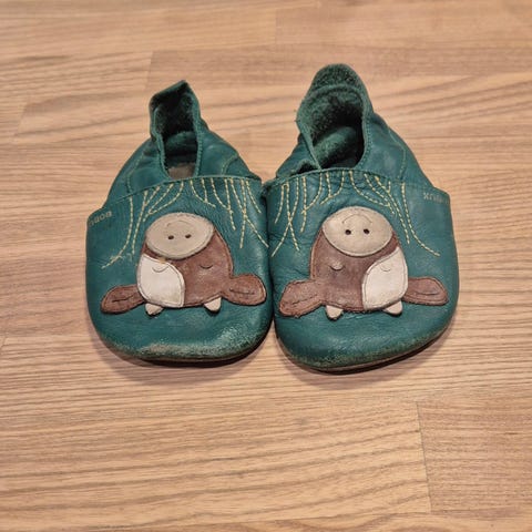 Barne tøfler fra Pololo (tysk produsent av sko i god kvalitet) i myk skinn. Lite brukt da de ikke falt i smak hos minste mannen. Str ca.28