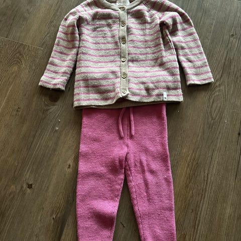 Rosa ullsett for barn, størrelse 80. Genser med matchende bukse i merinoull fra Cubus. Lappen på buksen er bare tatt av, men er ikke brukt. Nypris 598,-