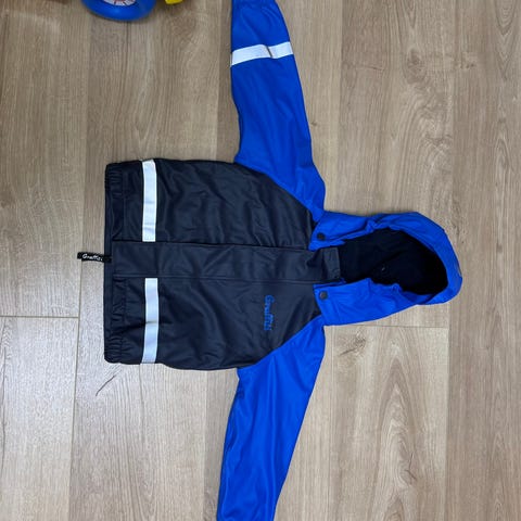 Reima regntøy med fleece på innsiden. Brukt to sesonger. Det er blitt endel bruksslitasje, men ingen synlige hull.