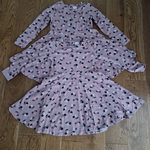 2 stk søte Polarn O Pyret kjoler med god passform etter tvillinger, str 98-104. Som nye! Kjolene er like fine til hverdags- som fest. Selges kr 149 per stk. Kommer fra røyk- og dyrefritt hjem.