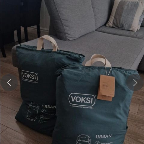 2 stk pent brukte Voksi vognposer/vinterposer med forlengerdel i fargen Metallic Mellange.
