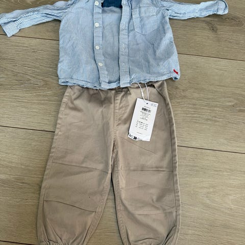 Fin klespakke med hverdagsklær og finbukse/skjortebody. Buksen er lagt opp, kan tas ned.