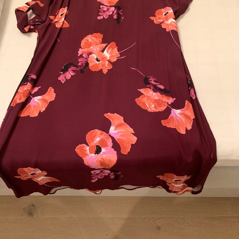 Nydelig lett/behagelig kjole. Grønn bunnfarge med guld. Separat underkjole som avbildet. Merke MAPP jeans. Total lengde 115 cm.