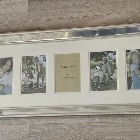 Billedramme . Lengde 44 og23,5 bredde. Dette er en ramme med 3 stk 10 - 15 i en ramme.Rammen er sølvfarget og helt ny.