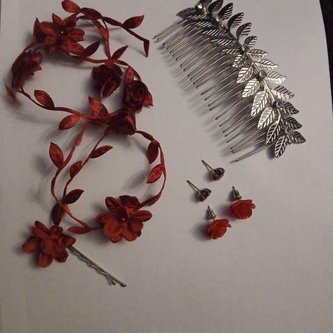 Armbånd og ørepynt i lilla farge. De blir lysere i sterkere lys.