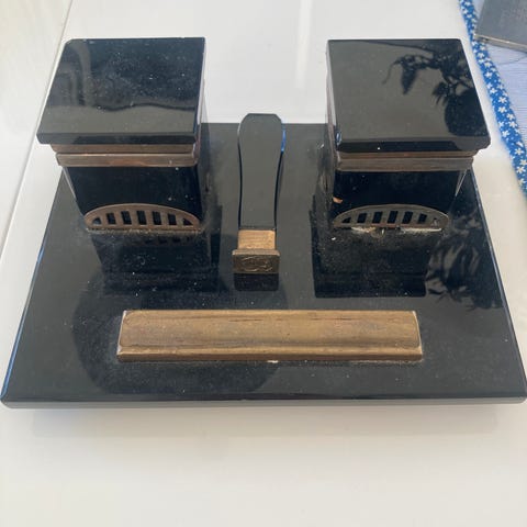 Blekkhus i glass og messing.