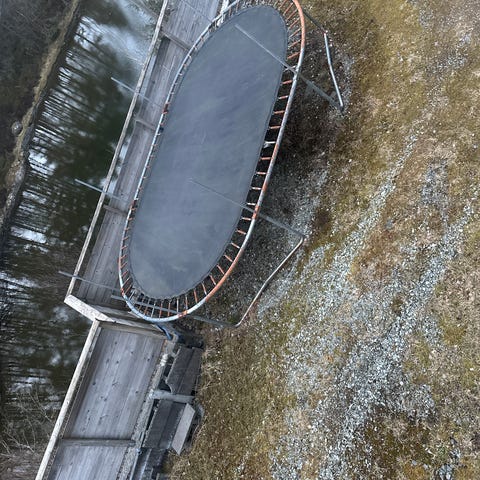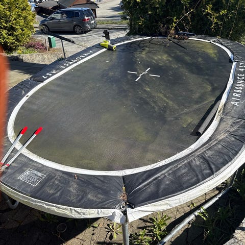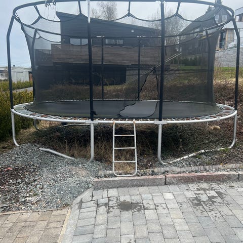 Veldig godt brukt north trampoline. Stor oval trampoline med sikkerhets nett gis bort. Den har en del rust på seg. Må demonteres og hentes.