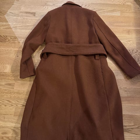 Kort kåpe, pent brukt. Belte li livet, pen kant nederst. Ull med litt Kashmir.