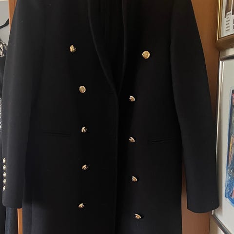 Pent brukt kåpe i fort modell fra Zara, str L, vil si det er mer en M. Pene detaljer på armer og krage. Kan brukes med og uten belte. Ull.