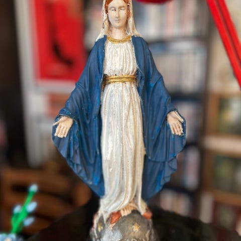 Håndlaget Jomfru Maria statue i tre fra Ecuador, høyde 32 cm