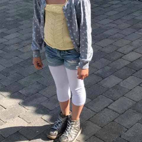 Brukt en sommer. Er i bomullsgarn. Knyting på stropper.