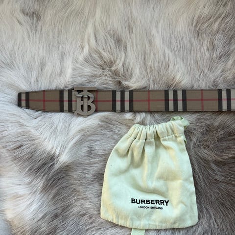 Vurderer å selge ett vintage Burberry belte i klassisk design med det ikoniske rutemønsteret (Nova Check / House Check) og enkel metallspenne. Beltet er smalere og passer perfekt til både dame og herre som liker en tidløs og elegant stil. Like kult til jeans og kjole som utenpå kåpa 👌🏼