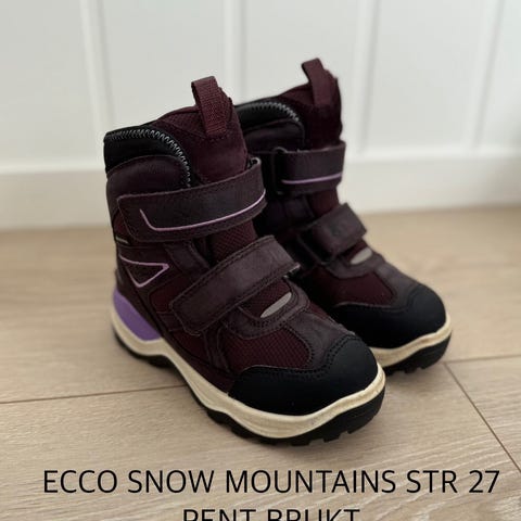 ECCO Snow Mountain barne vinterstøvler i størrelse 29, designet for jenter. Støvlene har en rød farge med svart og grå detaljer, samt borrelåslukking for enkel tilpasning. Materialet er slitesterkt og egnet for kalde og snørike forhold.