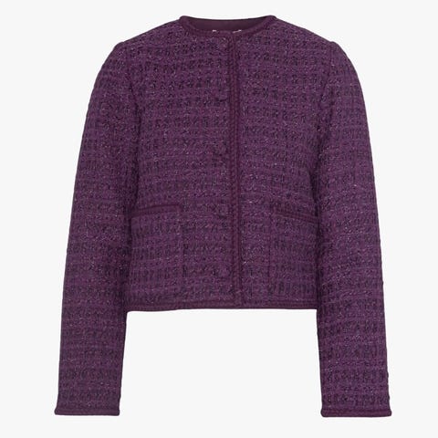 Lily Jacket fra Love Lolina. Den klassiske, korte boucle-jakken i en nydelig lys blå farge fra Love Lolina - dette blir en av våre favoritter denne sesongen! Lily Jacket har lange, rette ermer med lett definerte skuldre og rund hals uten krage. Jakken er dekorert med vakre kantbånd og har knappelukking og påsydde lommer foran. Lily Jacket er like fin til et par baggy jeans som den er som et alternativ til blazeren på kontoret.
