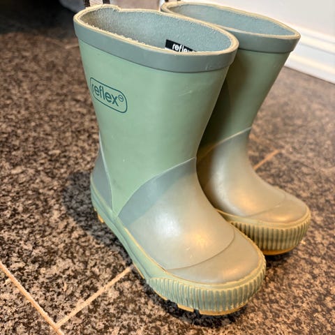 Viking grønne gummistøvler i størrelse 27. Fargen er noe slitt på siden av den venstre støvelen, se bilde, ellers hele og pene.