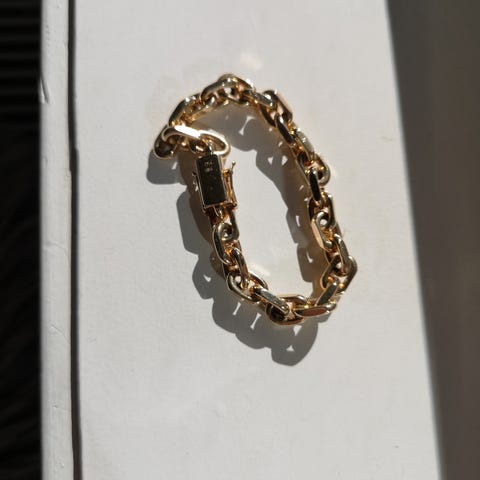 Gullkjede 14 k, 41 cm, 33g. Ligner på Anker mønsteret,men er mye tettere. Lite brukt.