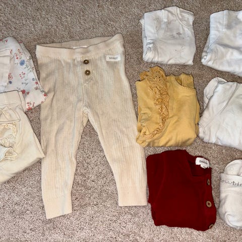 Den beige blomsterbodyen har en flekk på magen, har ringet rundt flekken på bildet (bilde 11/siste bilde)