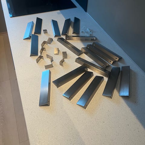 Deler som følger med for montering består av rustfrie stålskruer og Fischerplugger