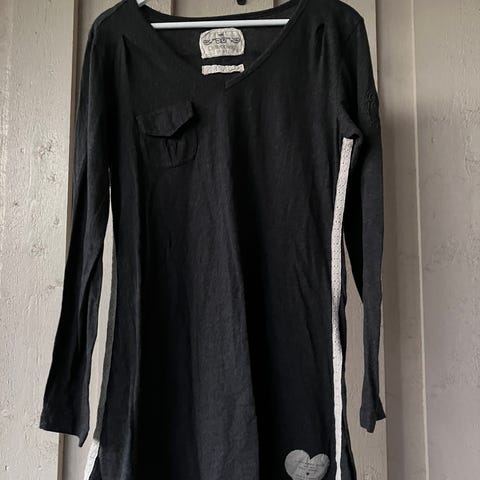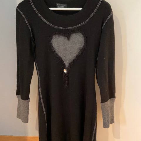 Oppløftende og kjærlig kjole, med et stort hvitt hjerte midt på brystet.