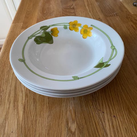 13 dype tallerkener fra Figgjo Flints Bekkeblom selges rimelig. Svært pent brukte og med veldig pen glasur. 20 cm i diameter. Bruksmerker kan forekomme, selv om disse er svært velholdte.