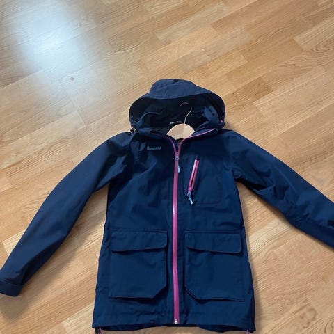 En veldig god skalljakke/ytterjakke/høstjakke/ vindjakke som tåler mye regn og vind. Jakken er god i str, så kan brukes fra 152/158/164. Brukt to sesonger her, men mye bruk igjen.