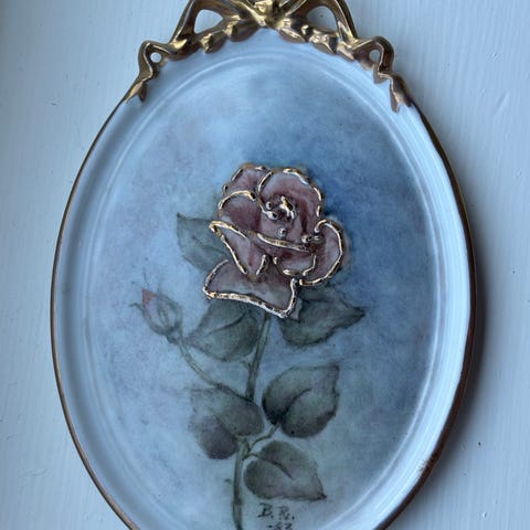 Vintage håndmalt porselens speil.
