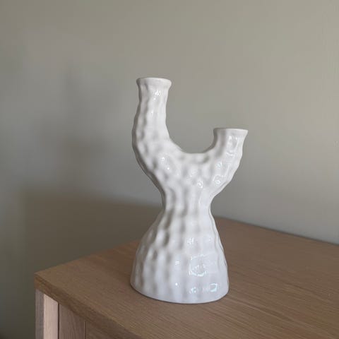 Lysestake med plass til 2 lys. Brukt en gang.
