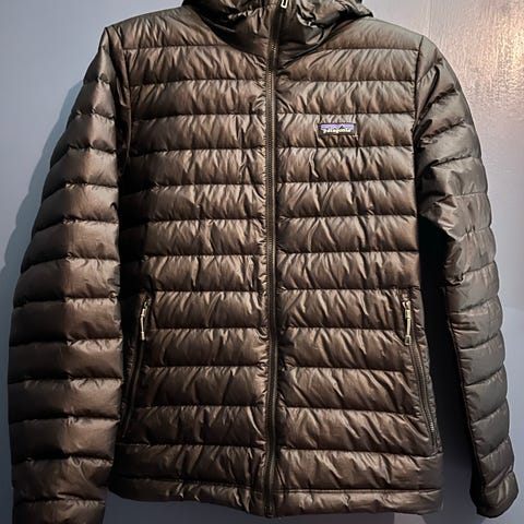 Patagonia Baggies Jakke i fargen Ink Black. Jakken har glidelås foran, to sidelommer med glidelås, og høy krage. Materialet er mykt og egnet for utendørs bruk. Designet for menn, størrelse M. Jakken er som ny.