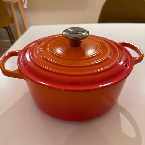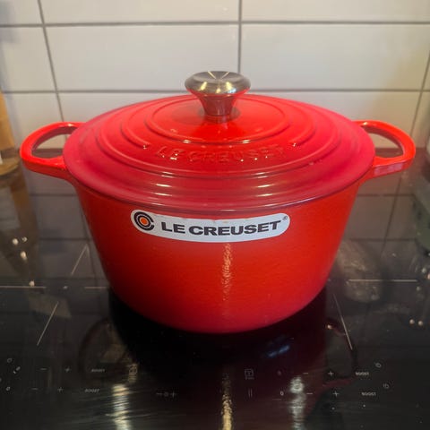 Le Creuset rund gryte i rød farge (cerise).