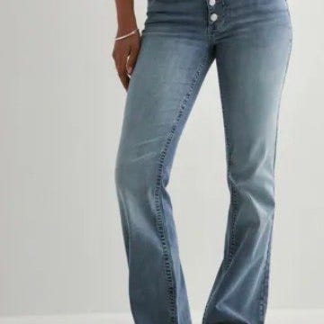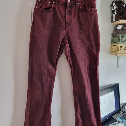 Brune jeans fra Never Denim i str W30L32.