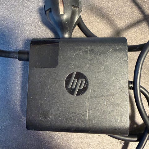HP Adapter Strømadapter med svart farge. Inkluderer strømkabel og ladekabel. Passer for kompatible HP-enheter som krever denne typen adapter.