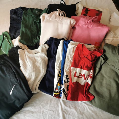 Selger en klespakke til ungdom med totalt 11 plagg + et slips. Den lyse olabuksa er godt brukt, mens alle de andre plaggene er lite brukt/ubrukt da dette var klær i klesskapet under en skikkelig vokseperiode på poden. Se bildekarusell for detaljer av plaggene som selges for kr. 40,- pr. plagg. Her er det mye klær igjen, både til hverdag og fest!