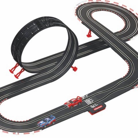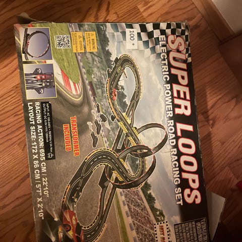 Super Loops Elektrisk Racersett med elektrisk motorisert bilbane. Inkluderer løype i størrelse 217 x 94 cm, passer for barn fra 8 år og oppover. Settet består av flere løkker og svinger for variert racingopplevelse.