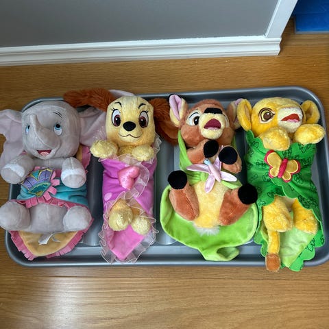 Lekekoffert plass til litt leker / klær inni, brukt som koffert til dukken her.
