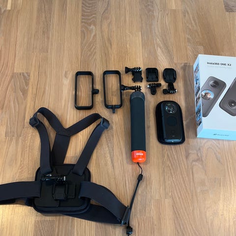 Insta360 X3 360 Action Kamera med to linser for 360-graders videoopptak. Kameraet har en berøringsskjerm på forsiden for enkel navigasjon og kontroll. Leveres i original emballasje med tilbehør. Passer for bruk i ulike utendørs- og sportsaktiviteter.