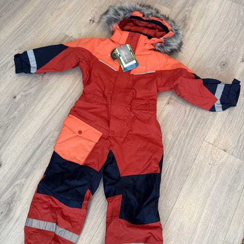 Den har avtagbare fotstropper som holder dressen nede rundt støvlene, store refleksdetaljer for synlighet og sikkerhet, samt avtagbar hette og pelskant.