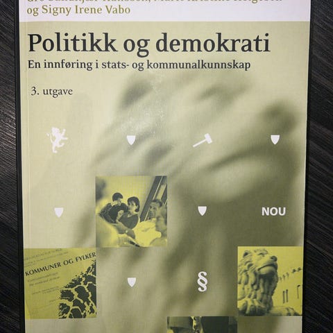 Politikk og demokrati er en samfunnsfag tekstbok som gir en innføring i stats- og kommunalkunnskap. Boken dekker temaer innen politikk og demokrati, og er tilpasset utdanningsformål.
