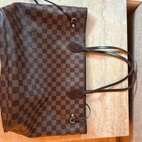 Vurderer å selge min Louis Vuitton Neverfull. Veldig pent brukt. Kjøpt på Louis Vuitton i Oslo i 2012 og har eget serienummer. Kun ett lite, nesten ikke synlig bruksmerke på kanten av vesken vist på bildet. Ellers kun normale bruksmerker på innsiden av vesken.