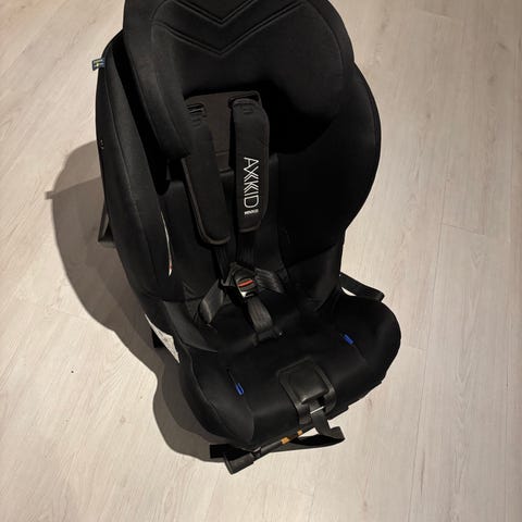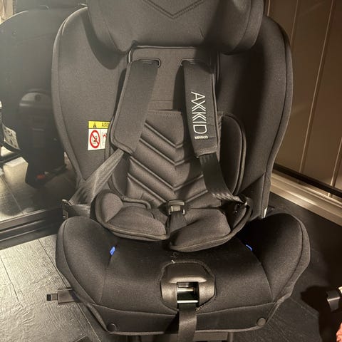 Bakovervendt bilstol Axkid Minikid 2 i blå/petrol farge.