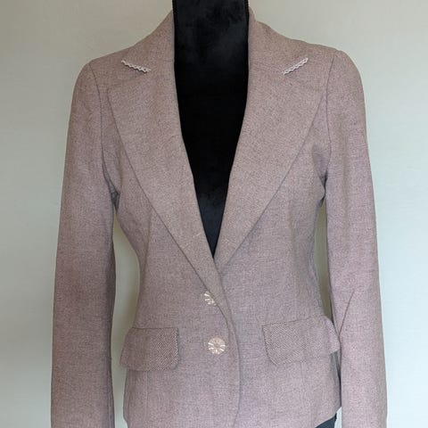 Ubrukt Mason's lys sandfarget blazer. Italiensk design og str 46, men liten i størrelsen og mer som en str M. Klassisk modell og feminint innsvinget snitt. Kvalitetsplagg i 45% Ull, 35% Viskose 20% Polymid. Jakken har eksklusive detaljer. Nypris kr 2299,-