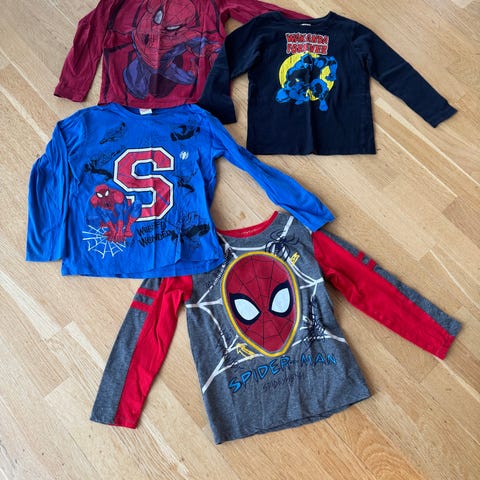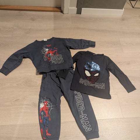 Og grå hettegenser med Spiderman i 110, behagelig materialet.