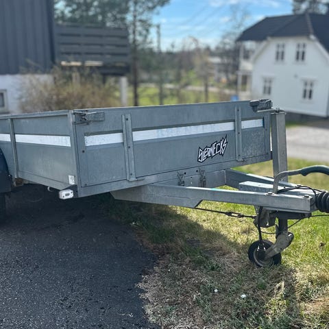 Stor tilhenger med god plass og ståhøyde under lokket. Totalvekt 2000 kg.