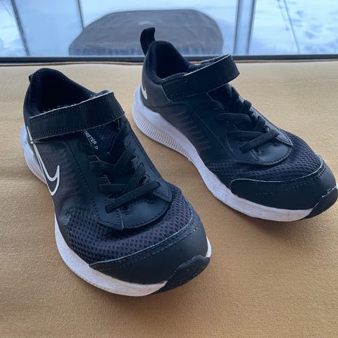 Reebok Bartek Bartek barnesko i størrelse 22, egnet for både gutter og jenter. Skoene er svarte med grønne detaljer og har en kombinasjon av mesh og syntetisk materiale. De har borrelås og elastiske lisser for enkel på- og avkledning, samt en gummisåle med godt grep. Skoene passer til daglig bruk og utendørsaktiviteter.