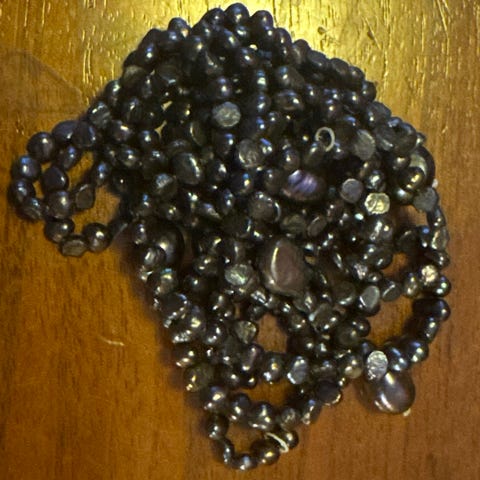 halskjede laget av 925 sølv og «Falkøye» svarte perler. Kjedet har en rund perleform og en lås i sølv. Opphørssalg estene as. Oppr pris kr 1.980,-.