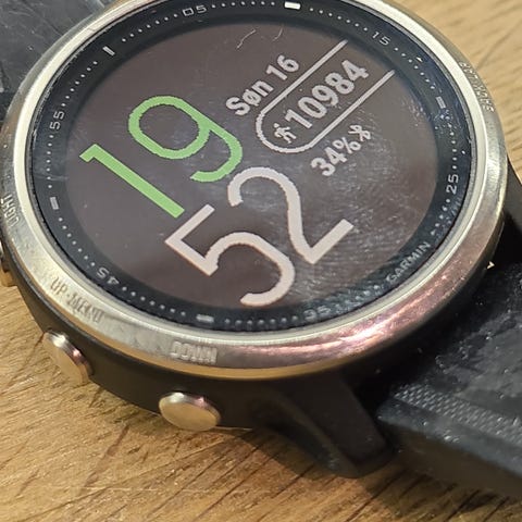 Garmin Fenix 7s, Silver / Graphite. Klokken har en robust design med en rund urskive og flere funksjoner for sport og helseovervåkning. Den er utstyrt med pulsmåler på baksiden og digital skjerm. Passer for brukere som ønsker en multifunksjonell smartklokke for trening og hverdagsbruk.