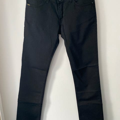 Levi's jeans i svart farge, størrelse M med midjevidde W30. Men føles mindre så passer best til Medium str. . Jeansen er 94cm i lengden.Lite og pent brukt